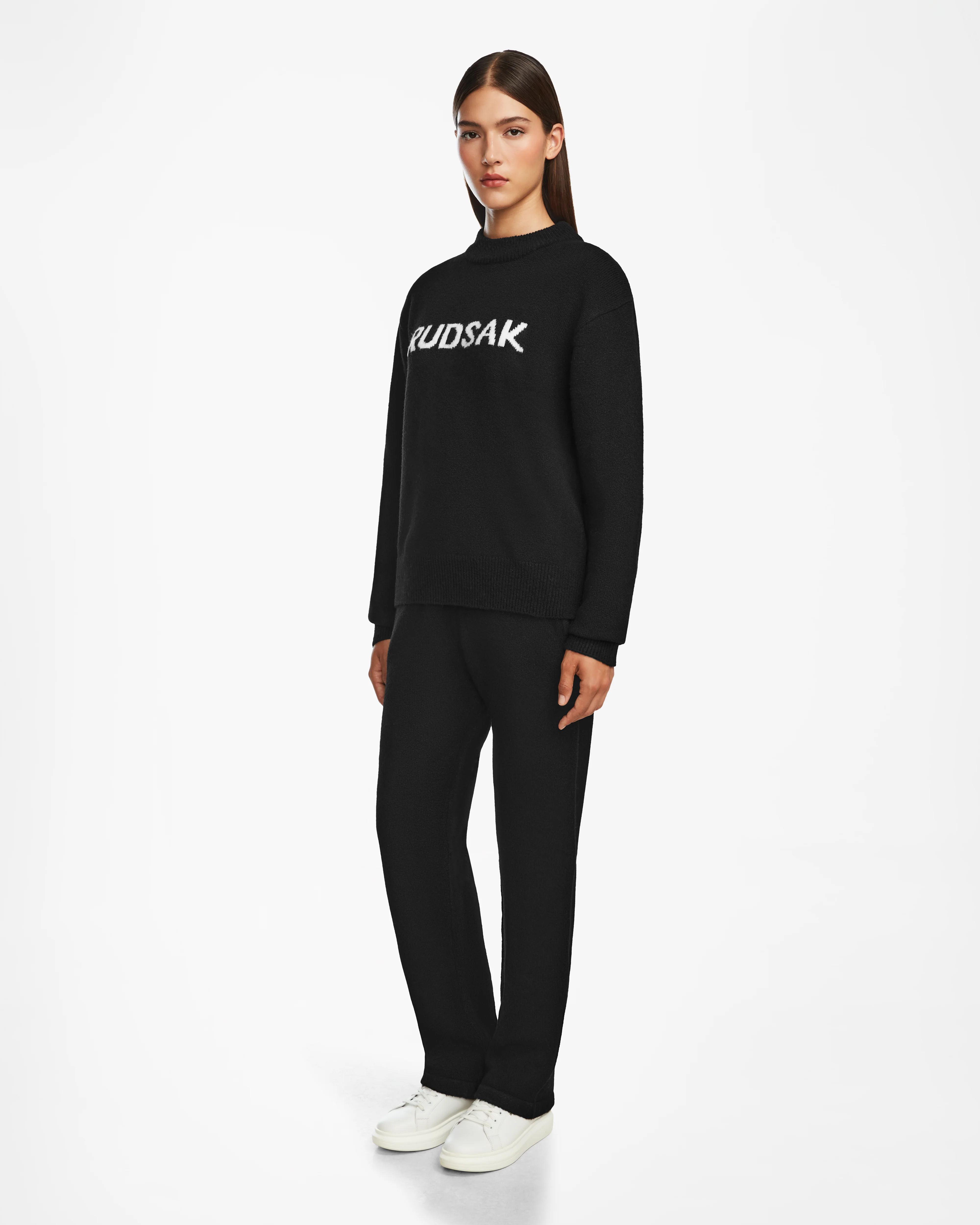 The JAVIN by RUDSAK is a unisex knit crewneck sweater featuring the RUDSAK logo on the front chest for signature style. Designed with a cozy relaxed fit, this sweater is perfect for lounging and effortless style. Pair it with the matching GEIGER pants for a coordinated look that combines comfort and fashion. Ideal for casual wear, the JANVIN sweater is a versatile addition to any wardrobe, offering a blend of modern design and relaxed elegance.