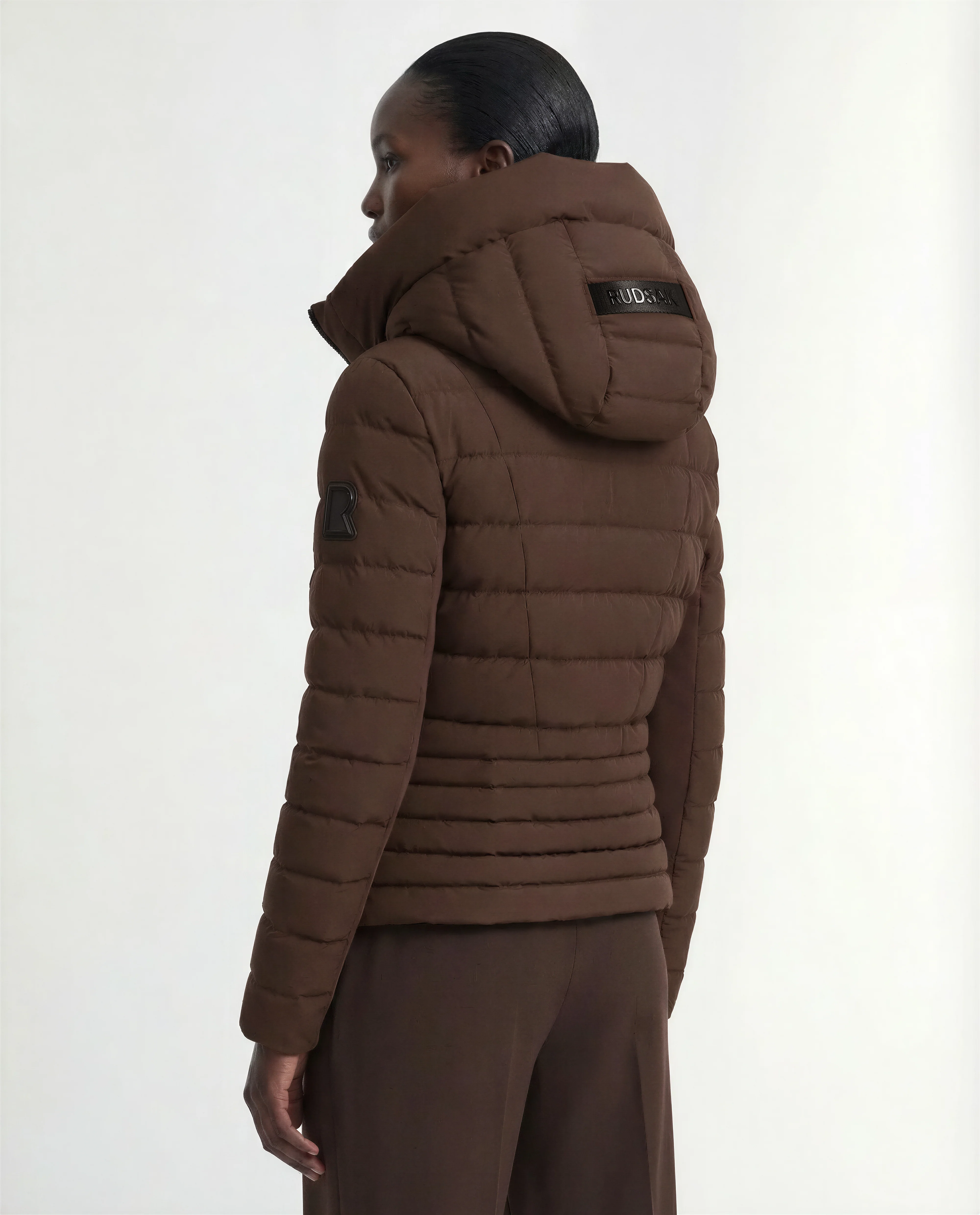 The MELISSA by RUDSAK is an everyday essential fitted, waist-length women's lightweight down puffer. With a subtle peplum finish and zippered side vents, along with stretch sleeve panels under each arm, this puffer allows for maximum movement and comfort. Made from technical and innovative fabric that is wind and water-resistant, it is also insulated with premium RDS certified down to ensure a maximum warmth-to-weight-ratio. Perfect for transitional weather, this weatherproof down jacket features a removable hood with adjustable draw cords for in-hood wind protection, as well as waterproof zippers and a wind flap under the front zipper for extra resistance.